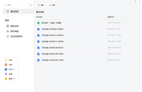 此外,新版QQ也在功能取舍上有所平衡。譬如辦公簡潔版的TIM,幾乎砍掉了QQ所有娛樂性的功能,只在側邊欄位保留了騰訊文檔、微云網盤等產品,至于QQ空間等“與辦公無關”的產品,則通過收藏按鈕,與郵箱、日程、待辦放置在產品界面的底部。