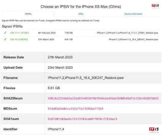 蘋果國(guó)行 iPhone XS Max 手機(jī)開放 iOS 16.4 簽名驗(yàn)證通道,降級(jí)上車從速 09:47:10