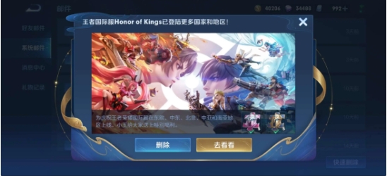 為慶祝《王者榮耀》國際服(Honor of Kings)在東歐、中東、北非、中亞和南亞地區上線,官方給玩家送上特別獎勵,登錄《王者榮耀》即可領取全服特別獎勵:皮膚碎片 * 5,英雄碎片 * 5,積分奪寶券 * 1,相關獎勵預計今天內通過郵件發送。