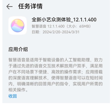 華為 P50 Pro 手機(jī)現(xiàn)已開啟小藝大模型版眾測(cè),版本號(hào)為 12.1.1.400,大小為 65MB,日期為 2024/2/20-2024/3/31。