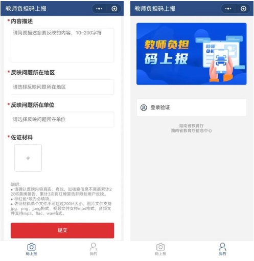 為進一步暢通中小學教師負擔過重問題反映渠道,推動各級建立健全相關制度機制,真正把時間和精力還給廣大教師,確保學校聚焦立德樹人根本任務,確保教師安心教學、潛心育人,湖南省教育廳制作了“教師負擔碼上報”小程序。