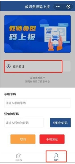3、 在“我的”頁面點擊“登錄驗證”按鈕進行用戶登錄驗證,驗證需輸入用戶手機號和短信驗證碼。