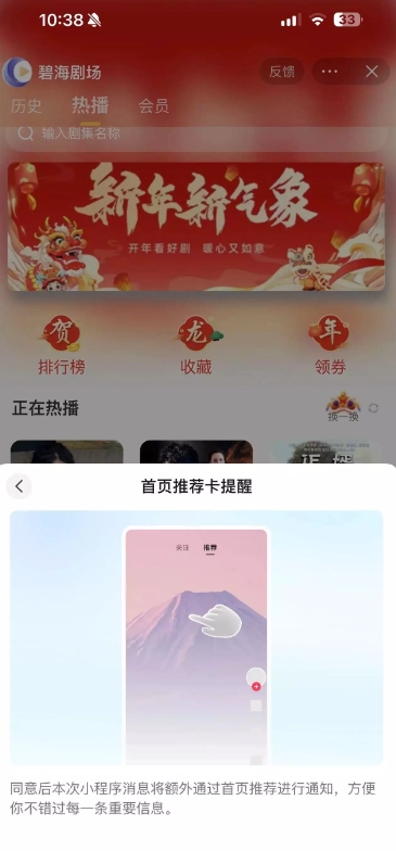 抖音短劇小程序向用戶申請更多「通知信息」權(quán)限。