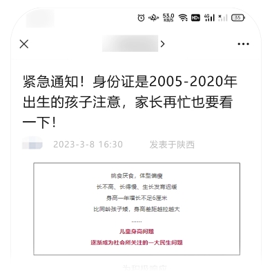 標題宣稱緊急通知,同時明確指向某部分特定年齡段人群作為目標用戶,誤導該群體用戶以為出臺與其相關的政策,而正文實則為商業活動 / 課程廣告。