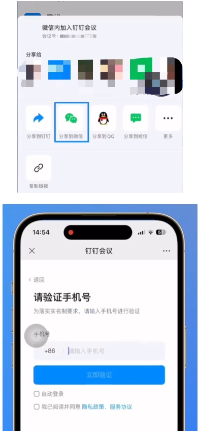 在微信或外部瀏覽器內點擊釘釘視頻會議入會鏈接,只需驗證手機號即可加入會議,開會更便捷。