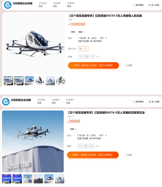 之前,交個朋友直播間在淘寶平臺以 199 萬的價格售出全球首批“空中的士”,引發(fā)網友熱議。