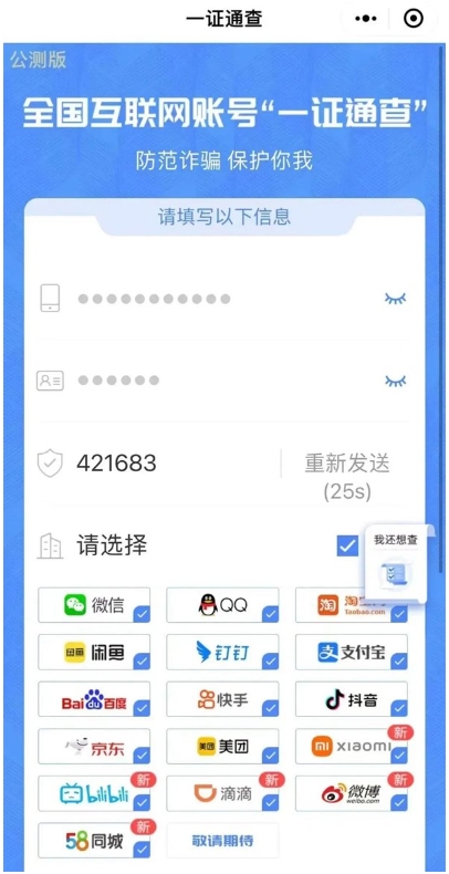 其中,互聯(lián)網(wǎng)賬號覆蓋了微信、淘寶、支付寶等16個平臺,提交申請后會在48小時內(nèi)通過短信發(fā)送結(jié)果。