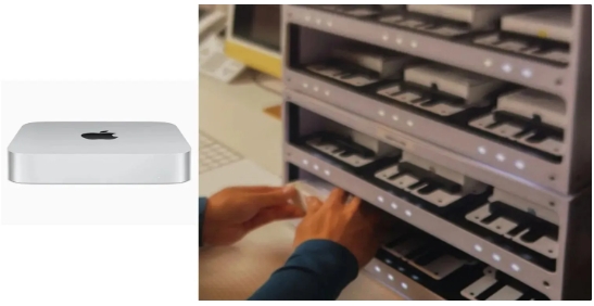 “Presto” 系統在 Mac mini 上運行,技術人員掃描 iPhone 盒子后,手機就會被添加到等待更新的設備隊列中。