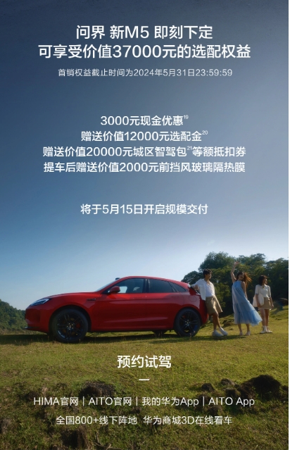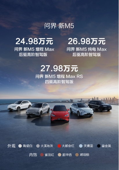 24.98 萬元起,AITO 問界新 M5 正式發(fā)布:全系標(biāo)配華為高階智駕 09:00:12