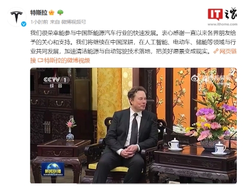 特斯拉中國發文稱,公司將繼續在中國深耕,在人工智能、電動車、儲能等領域與行業共同發展,加速清潔能源與自動駕駛技術落地,把美好愿景變成現實。