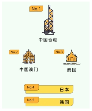 境外目的地消費熱度 TOP5:中國香港、中國澳門、泰國、日本、韓國。