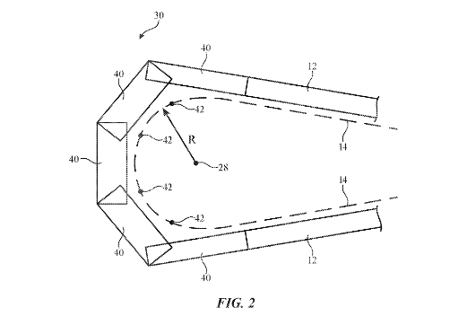 圖 2 中使用多個 #40 鉸鏈連接,然后彼此耦合以旋轉運動,讓外殼#12 的第一部分和第二部分之間串聯延伸,不過專利圖來看相鄰鉸鏈連桿的整體旋轉量可能會受到限制。