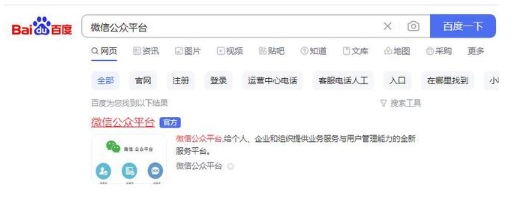 1、電腦瀏覽器搜索“微信公眾平臺”,點擊藍色官方標識的網站。