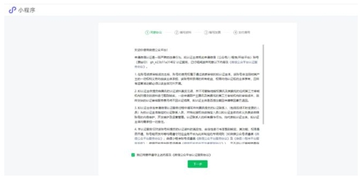 3、認證協議說明頁面,繼續點擊“下一步”綠色按鈕。
