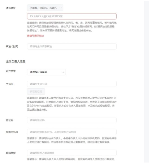 繼續小程序負責人填寫,對于個體工商戶沒有這個界面,只有企業用戶才有的,負責人信息填寫如提示重復字樣,就需要尋找除法人以外的小程序管理員。