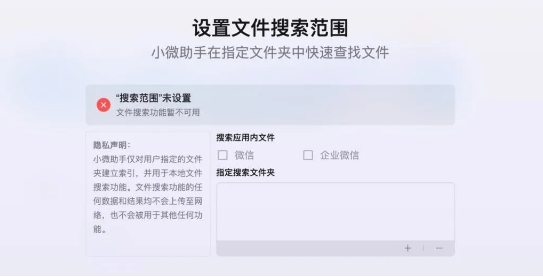 小微助手提供 Windows、macOS 雙端安裝包,用戶可根據(jù)自己的系統(tǒng)平臺選擇安裝包下載使用。打開 App 會開始簡單的引導,用戶可以對該應(yīng)用的搜索權(quán)限進行限制,以及呼出的快捷方式進行設(shè)定。
