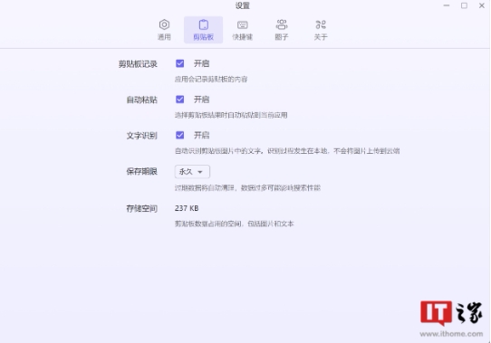 小微助手支持剪貼板設(shè)置,可記錄剪貼板內(nèi)容,支持自動粘貼、圖片文字識別等功能,支持數(shù)據(jù)保存期限時間自定義和存儲空間占用顯示。