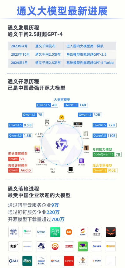 據阿里云官方介紹,通義大模型通過阿里云服務企業超 9 萬,通義開源模型累計下載量突破 700 萬。通義落地應用進程加速,現已進入 PC、手機、汽車等領域。