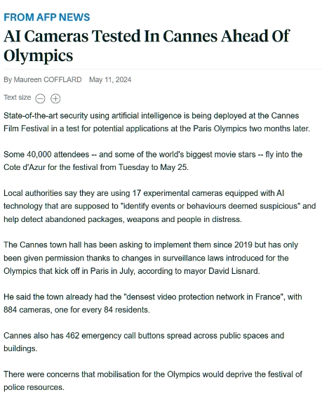 為巴黎奧運安保“鋪路”,戛納電影節將部署可識別可疑行為的 AI 攝像頭