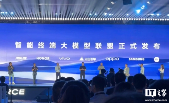 在字節跳動 2024 春季火山引擎 Force 原動力大會上,火山引擎與 OPPO、vivo、榮耀、小米、三星、華碩宣布成立智能終端大模型聯盟。