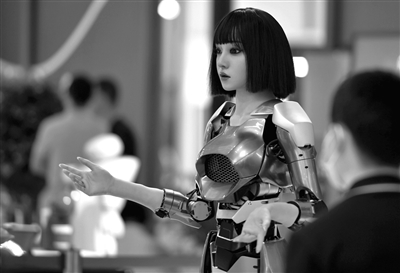 在第七屆數字中國建設峰會現場體驗區,超仿生人形機器人“小柒”在向觀眾致意。新華社記者 魏培全 攝