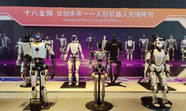 人形機器人“十八金剛”現(xiàn)場列成長龍,成為WAIC風(fēng)景線。