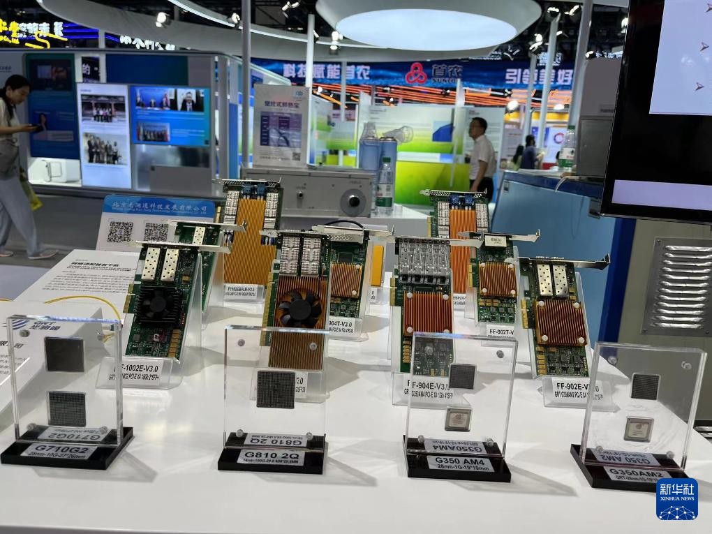 7月15日,在北京科博會上,企業展出的網卡、模塊和芯片等產品。新華社記者 陽娜 攝