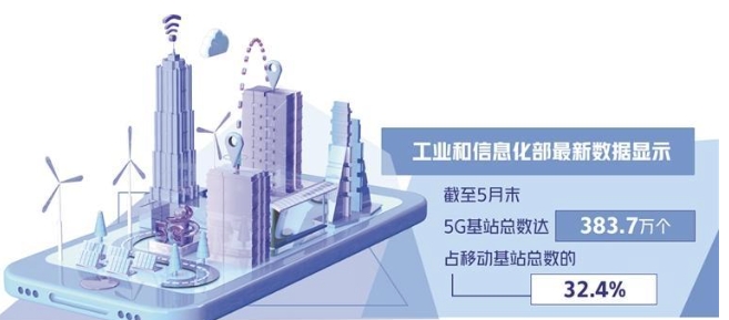 工業(yè)和信息化部最新公布的數(shù)據(jù)顯示,截至5月末,5G基站總數(shù)達383.7萬個,占移動基站總數(shù)的32.4%;5G移動電話用戶達9.05億戶,占移動電話用戶的51.3%。