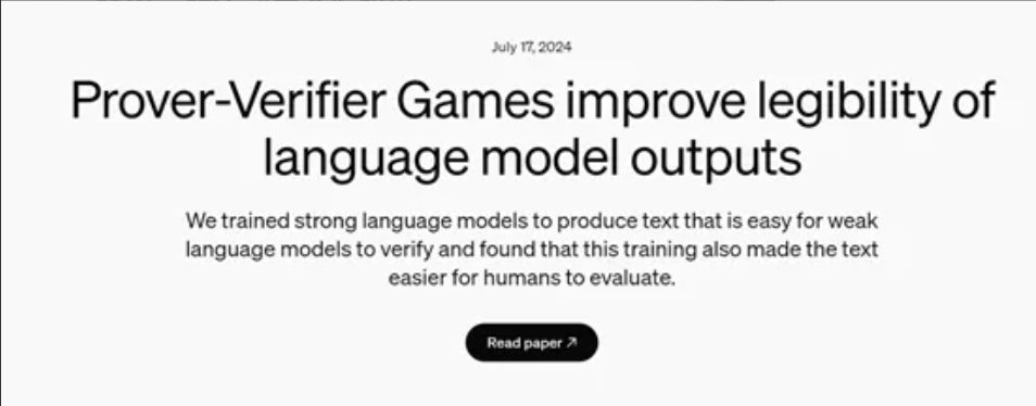 7月18日凌晨,OpenAI在官網發布了最新技術研究——Prover-Verifier-Games。