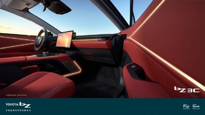 據介紹,本次試裝下線產品配備了最新的豐田自動駕駛系統,作為一汽豐田新能源分公司第三款純電車型,外觀沿用了 bZ3 家族式設計風格,多段式動感腰線配合貫穿式尾燈彰顯了運動感,大尺寸輪轂等元素凸顯車輛更加前衛。內飾方面進行了全面的升級,整體提升了車輛的時尚感、運動感及高級感。