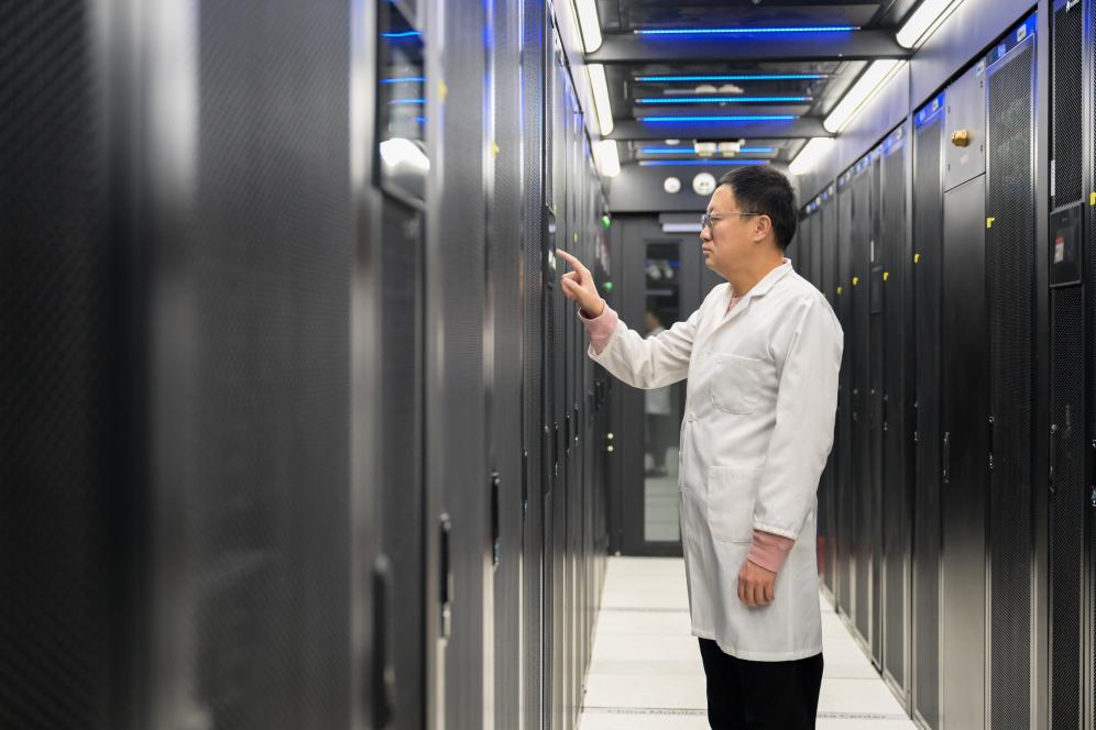 2023年11月28日,工作人員在位于呼和浩特市和林格爾新區的中國移動智算中心(呼和浩特)巡檢設備。新華社記者李志鵬 攝