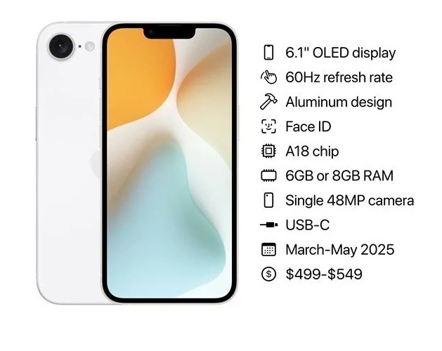 據(jù)悉,由于屏幕,芯片以及影像等方面都有不少提升,iPhone SE 4的售價也會上漲,起售價上漲至499美元,約合人民幣3600元。不過對于SE系列的定位而言,iPhone SE 4依舊會是2025年最有性價比的iPhone手機