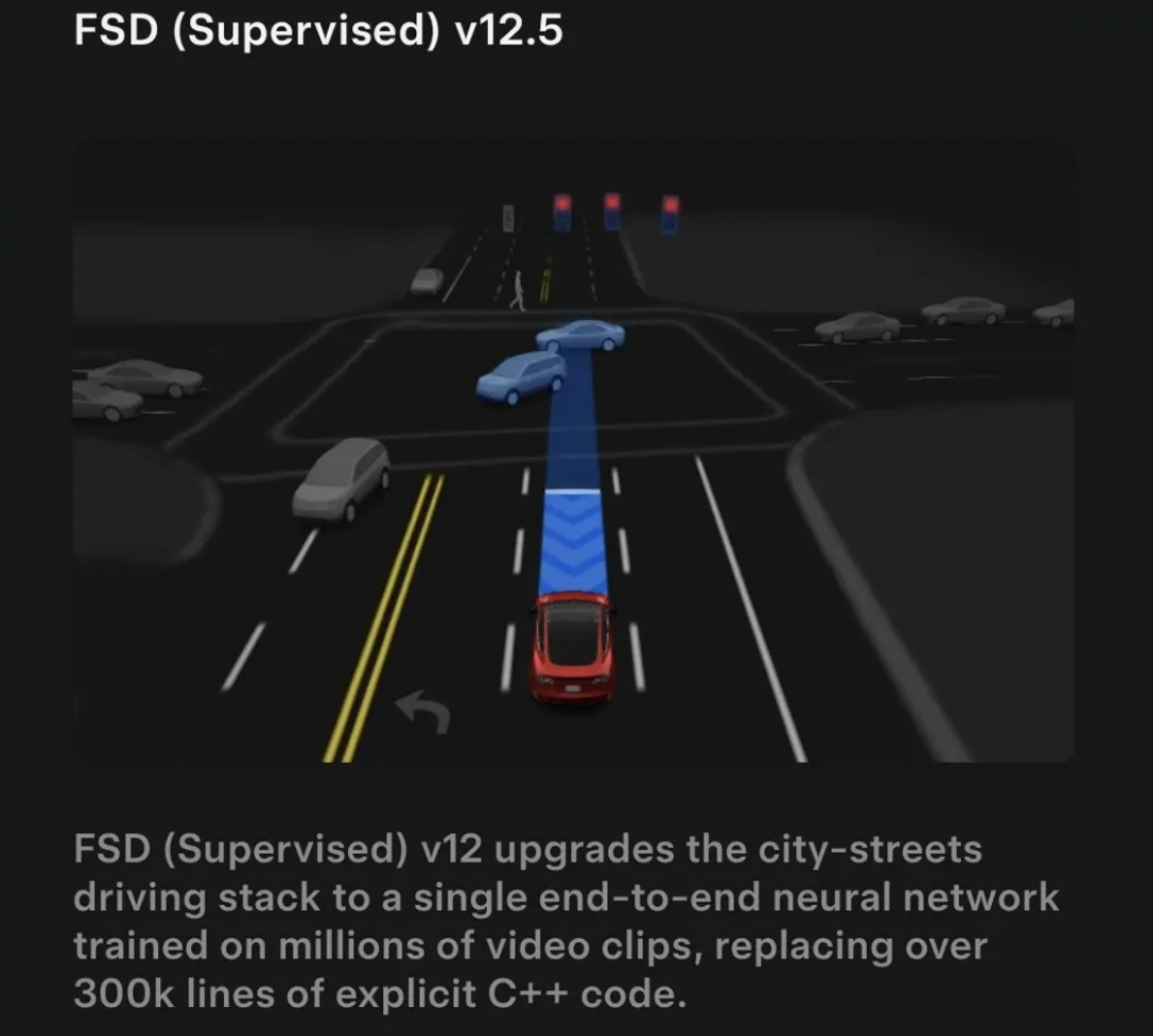 與12.4版本相比,F(xiàn)SD v12.5參數(shù)提高了5倍之多。新版本已經(jīng)將高速v11技術棧切為v12棧,也就是高速、城區(qū)智駕全面切換為端到端方案。