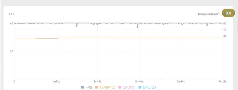 在實際游戲中,我們對市面上受眾用戶較多的《王者榮耀》進行測試,我們將畫質調至最高,兩把游戲下來,麥芒30基本穩定在60幀左右,游戲中的幀率曲線幾乎要成為一條直線。所以這款產品應付日常使用和輕度游戲基本是沒有什么問題的。