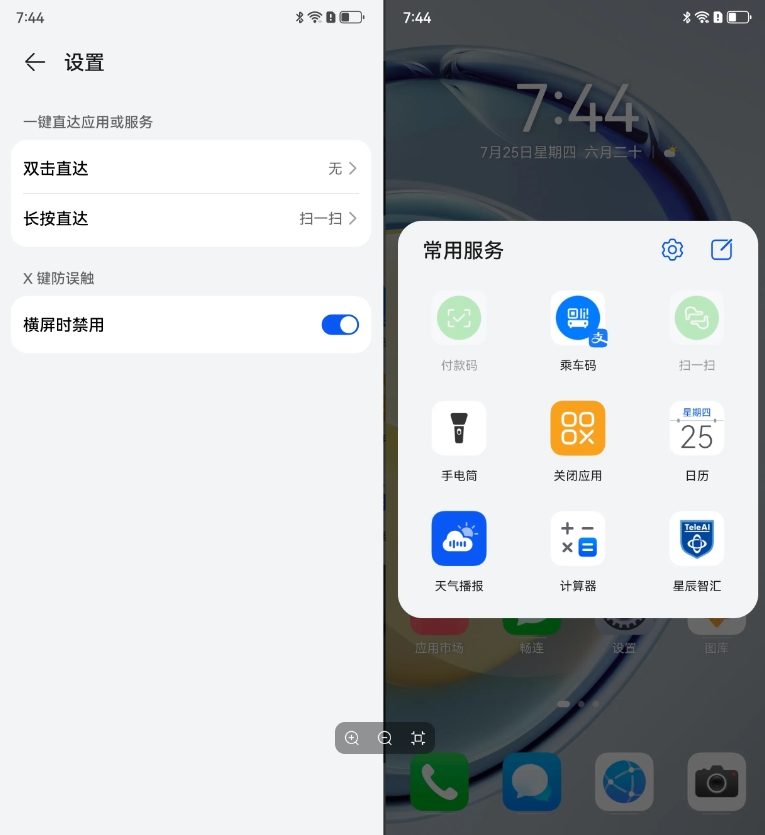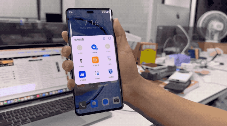 差點忘了,麥芒30還有一個特別有意思的設計,那就是在機身中框的左上角有一顆獨立物理按鍵,官方將其稱為X鍵。單擊它時就能直接呼出常用APP九宮格頁面,你可以提前將自己常用的APP「放入」其中,例如像什么付款碼、手電筒、指定聯系人等等等等。