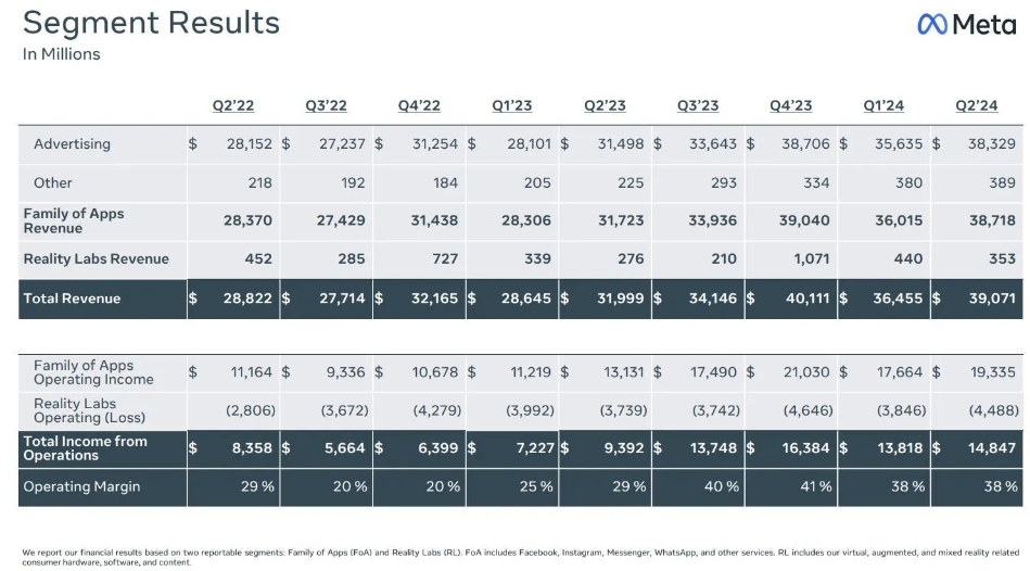 7月31日周三美股盤后,“元宇宙平臺”、大舉押注AI的社交媒體與數字廣告巨頭Meta公布了2024財年第二季度財報。