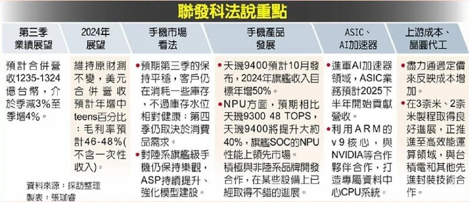 蔡力行表示天璣 9400 芯片的平均售價(jià)(ASP)也會(huì)高于前代,并積極開(kāi)拓國(guó)際市場(chǎng)。