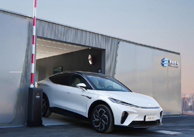 2023 年 11 月,飛凡首個(gè)雙倉(cāng)換電站落地,擁有 40 塊儲(chǔ)備電池,每天可換電 560 次。該換電站依托雙倉(cāng)結(jié)構(gòu),支持 90 秒極速換電。依托捷能智電,飛凡汽車與中國(guó)石化、中國(guó)石油等合作,號(hào)稱首創(chuàng)“換電不斷電”“貫穿式換電”,不用倒車就能入倉(cāng)。