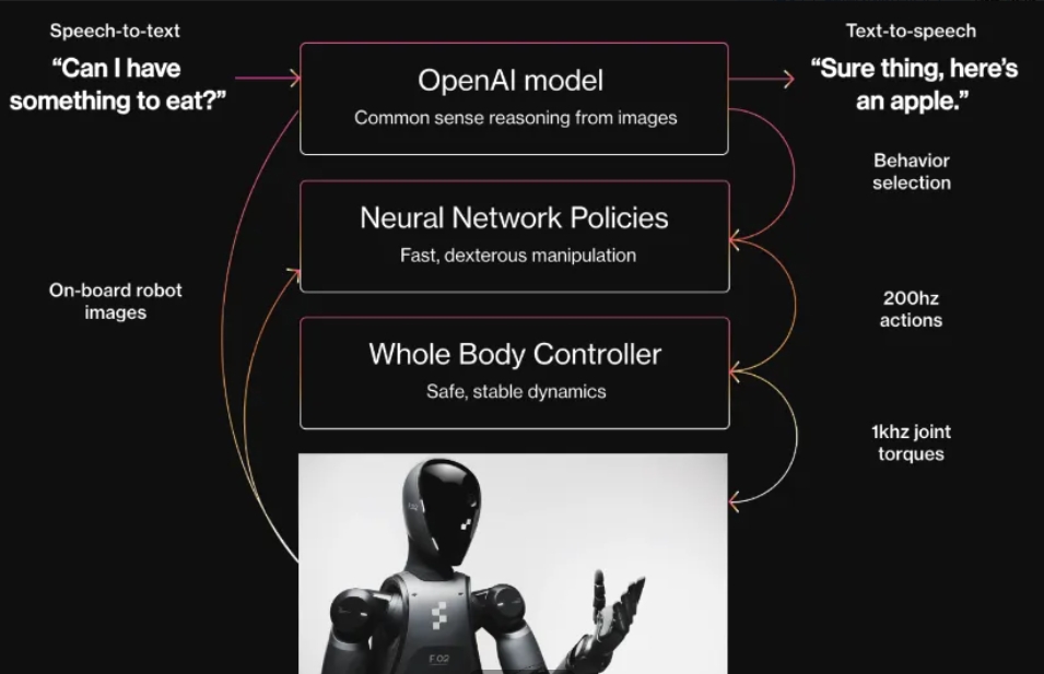 除了視覺以外,F(xiàn)igure 02也搭載了公司投資人OpenAI專門定制的語音到語音推理模型,通過機(jī)載麥克風(fēng)和揚(yáng)聲器與人類進(jìn)行對話。愛德考克也透露,這個(gè)機(jī)器人的默認(rèn)UI是語音。