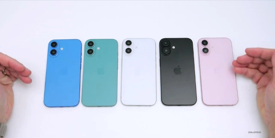 IT之家 8 月 8 日消息,YouTube 主播亞倫?佐洛(Aaron Zollo)昨日發布新視頻,分享了蘋果 iPhone 16 標準版機模上手體驗,共展示了藍色、粉色、白色、黑色和綠色 5 種顏色,和 iPhone 15 相比,主要棄用了黃色,新增了白色。