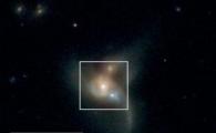 多個望遠鏡捕捉到的 SDSS J084905 51+111447 2 星系系統的圖像。這是一個由三個合并的星系組成的系統,距離地球約 10 億光年。一