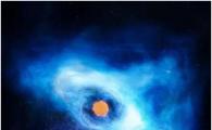 脈沖星及脈沖星風云系統的示意圖,中間的橙色部分代表脈沖星(僅為示意繪制,天體大小不反映實際比例)。 記者27日從中國科學院高能物